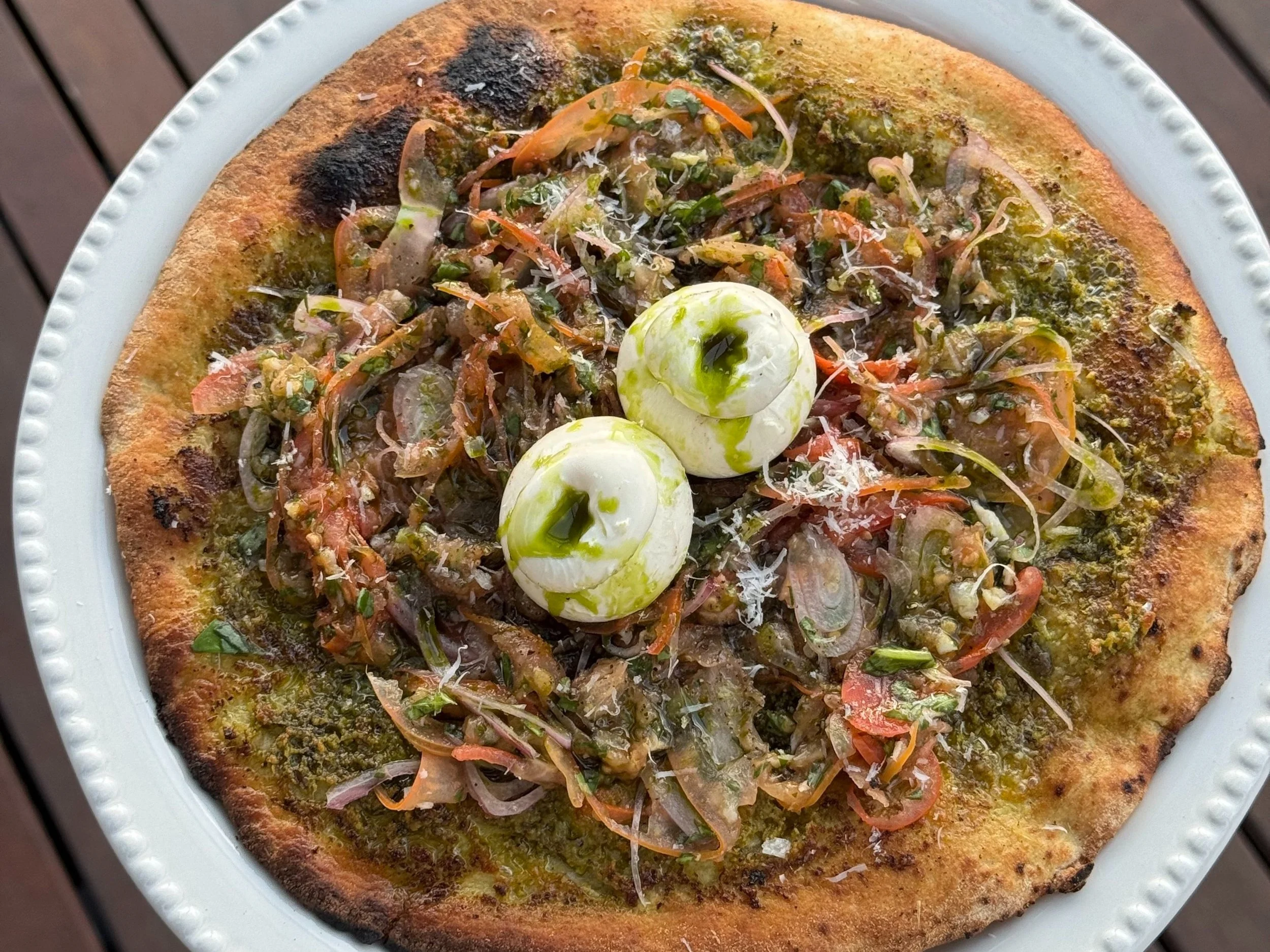 Pistachio Pesto, Marinated Tomato & Burrata Pizza