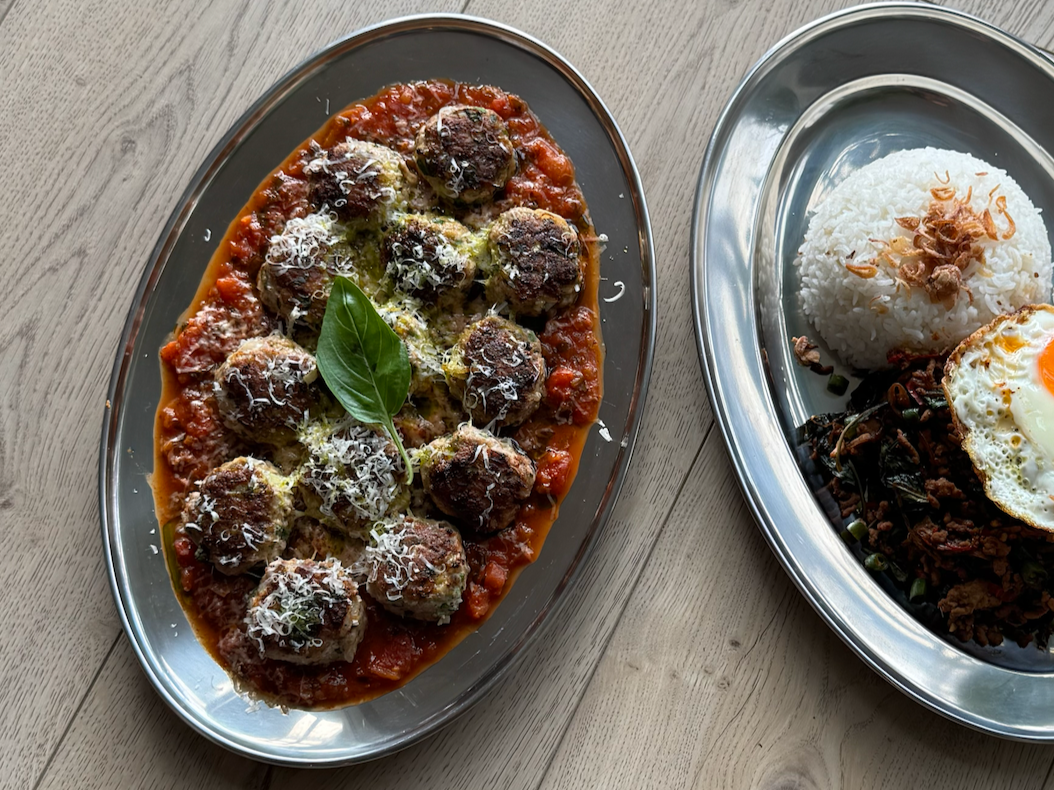 Meatball, Pesto Rosso & Rocket Flatbreads